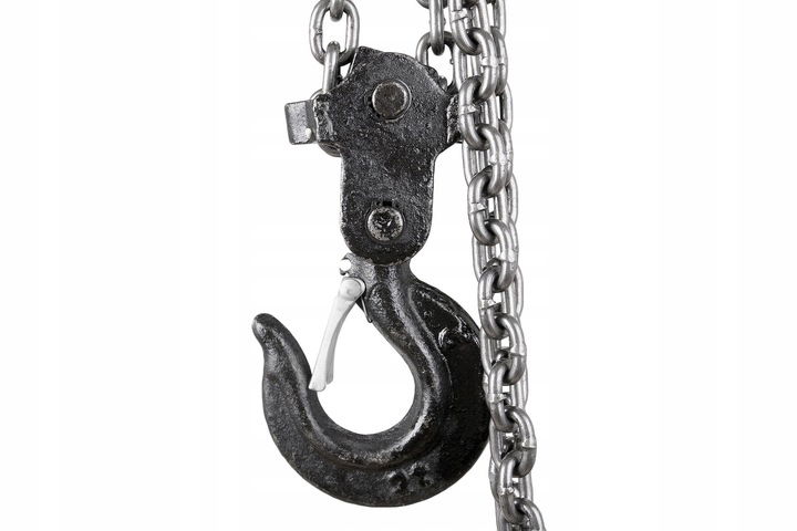 Hak został wykonany z wytrzymałego żeliwa, a zastosowane zabezpieczenie skutecznie zapobiega wypięciu się podnoszonego ładunku. Wciągarka łańcuchowa łączy w sobie niewielką wagę, duży udźwig oraz niską cenę, dzięki czemu z powodzeniem sprawdzi się zarówno w domowym garażu, jak również w warsztatach i magazynach.