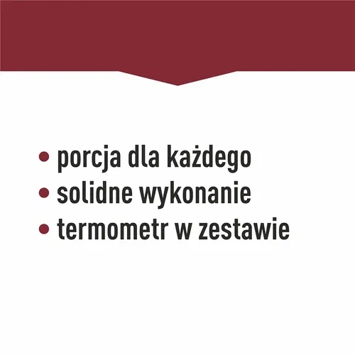 Solidna i przemyślana konstrukcja sprawia, że produkt jest niezwykle wytrzymały i łatwo można utrzymać go w czystości. Dwa palniki zasilane paliwem żelowym pozwalają na wędzenie bez dostępu do gazu czy prądu. Wędzenie polega na podgrzewaniu od spodu zrębków wędzarniczych umieszczanych na dnie wędzarni, w efekcie czego wytwarza się dym. Nadmiar tłuszczu powstającego podczas wędzenia ocieka na specjalną tackę tłuszczową, dzięki czemu nie spala się on, a cała wędzarnia niemal nie generuje dymu. Jednocześnie tacka gwarantuje brak kontaktu paliwa z wędzoną żywnością. Specjalne palniki, w których umieszcza się bezwonne i bezzapachowe paliwo żelowe, posiadają regulację płomienia umożliwiającą zwiększenie lub zmniejszenie temperatury w komorze wędzarniczej. Termometr dołączony do wędzarni pozwala zaś na kontrolę tej temperatury. To dzięki niemu dowiesz się, czy wędzenie przebiega w optymalnych warunkach, a Twoje ulubione dania będą aromatyczne i pyszne!