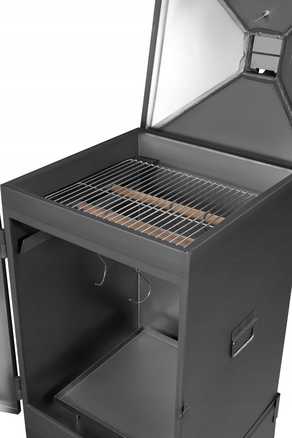 ✅Obudowa komory jest wykonana z blachy o grubości 1mm, spód oraz daszek wędzarki – z blachy 1,5mm. Komora wędzarki również posiada dwa uchwyty do przenoszenia.