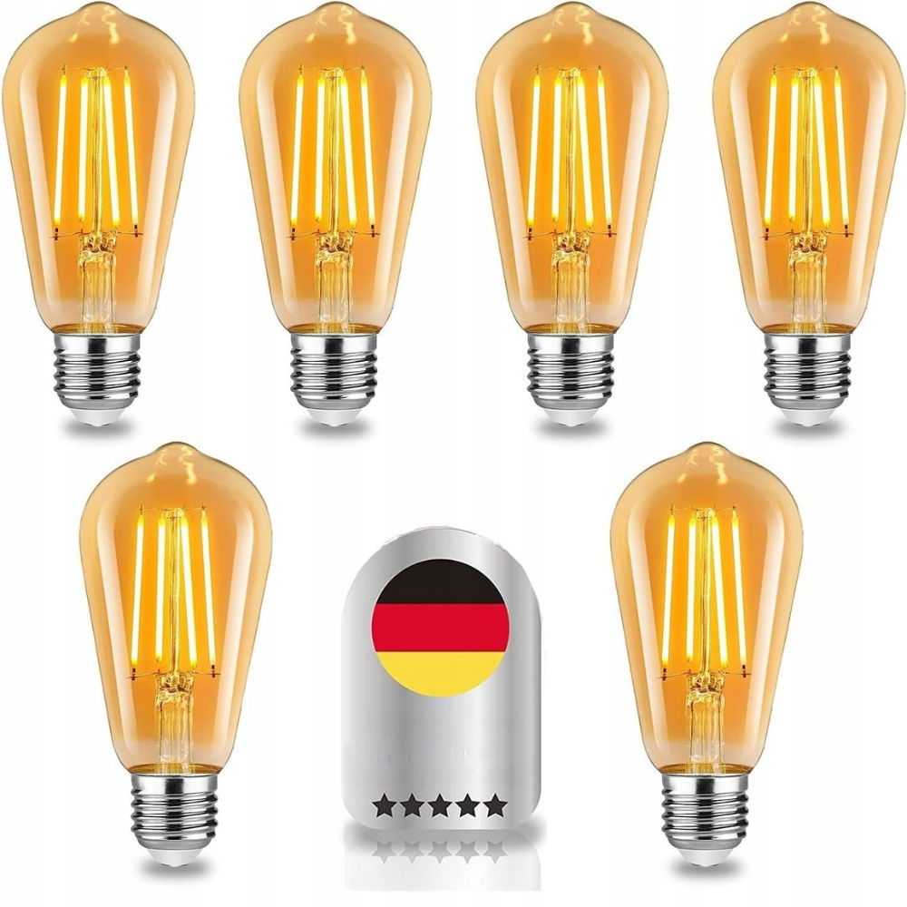 ✨Wenscha Żarówki LED E27 Vintage 6W – 6 szt., bursztynowe szkło, ściemnialne✨
