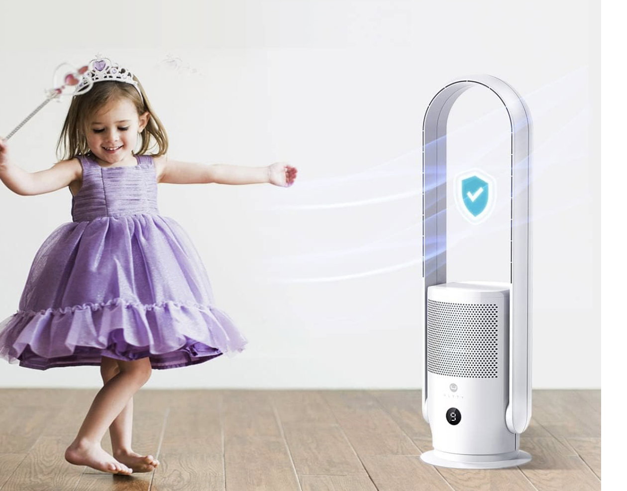 Nasz wentylator posiada unikalną konstrukcje bez łopatek, dzięki czemu nasz produkt jest łatwy w czyszczeniu i bezpieczny.