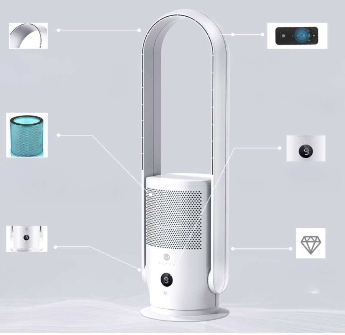 Ten stylowy, biały wentylator bezłopatkowy zapewnia nie tylko skuteczną cyrkulację powietrza, ale również jego dokładne oczyszczanie dzięki wbudowanemu filtrowi HEPA, który usuwa 99,97% zanieczyszczeń. Cicha praca, dotykowy panel sterowania, oscylacja 90° i timer 8-godzinny sprawiają, że U ULTTY to urządzenie komfortowe i łatwe w obsłudze, które doskonale zadba o świeże i zdrowe powietrze w Twoim otoczeniu.
