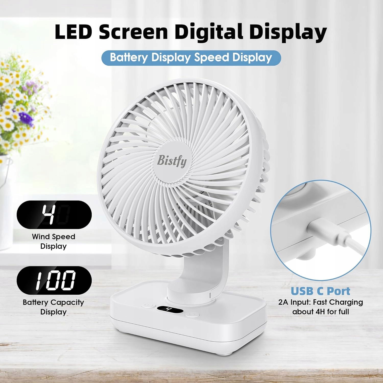 Wentylator biurkowy Bistfy, USB, 4 prędkości, chłodzący, cichy