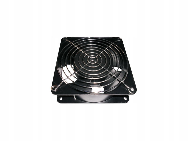 Wirnik wentylatora osadzony na łożyskach kulkowych co gwarantuje cichą pracę. Obudowa z tworzywa sztucznego. Zabezpieczenie łopatek wentylatora za pomocą metalowej osłony (grill). Mocowanie czteropunktowe.