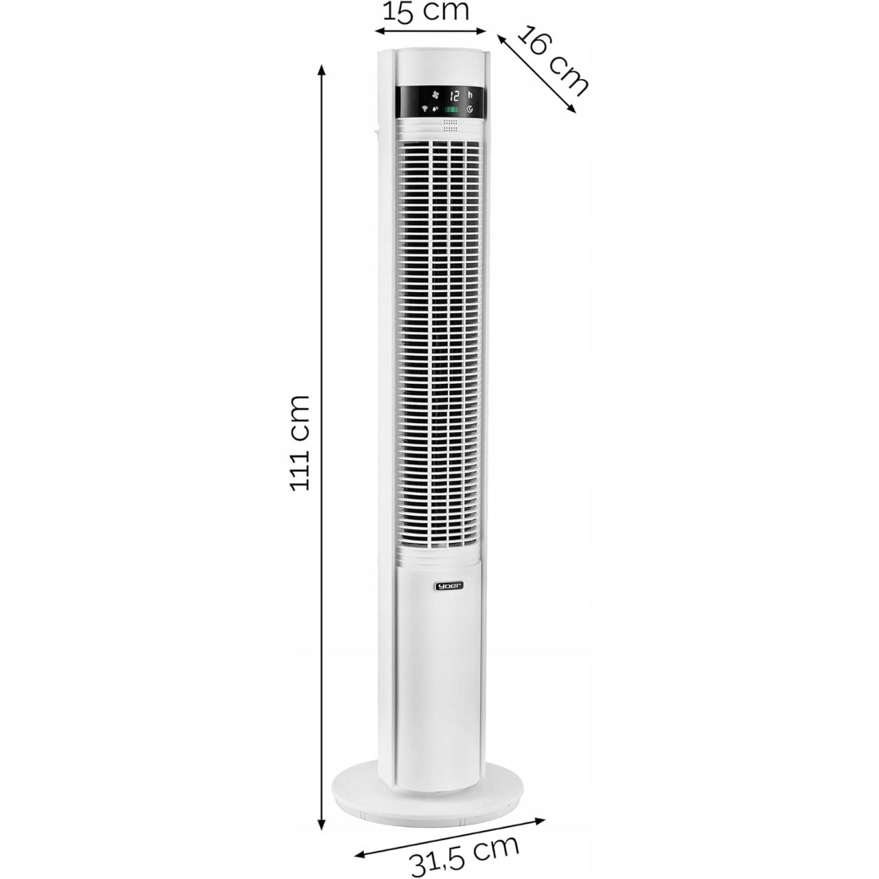 Wentylator kolumnowy stojący Cichy 19dB Yoer 12 m zasięgu 12 prędkości 12h