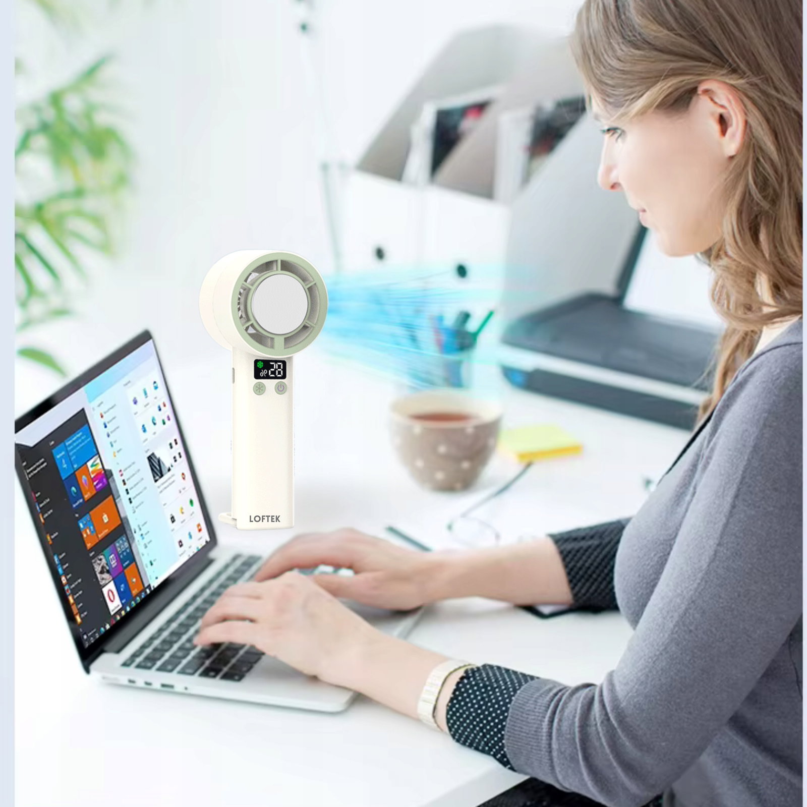 Możesz dopasować siłę nawiewu do swoich potrzeb - od lekkiej bryzy po mocne chłodzenie. Sterowanie jednym przyciskiem jest proste i wygodne.