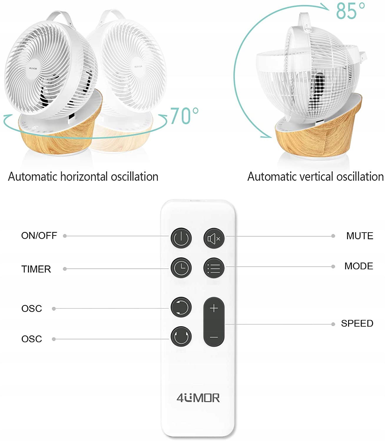 【Unikalna konstrukcja】Dzięki funkcji oscylacji 3D ten wentylator oscylacyjny może automatycznie obracać się o 70 ° w poziomie i 85 ° w pionie, obszar zasilania powietrzem jest szerszy, cyrkulacja powietrza w pomieszczeniu jest szybsza. Unikalna baza słojów drewna, prosta opływowa konstrukcja. Uchwyt ze skóry PU sprawia, że jest wygodny do przenoszenia.