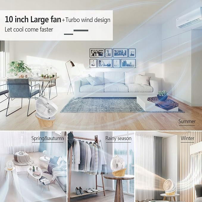 【 wentylator cyrkulacyjny powietrza turbo 4UMOR】W przeciwieństwie do tradycyjnych wentylatorów, ten wentylator chłodzący tworzy silny spiralny wiatr, przyspiesza cyrkulację konwekcyjną powietrza w pomieszczeniu, może wydmuchać przepływ powietrza do 18 m, maksymalna objętość powietrza wynosi 30,39³ / min. Tryb cyklu to szybkie uruchomienie jednym klawiszem najwyższego wiatru Turbo 12. stopnia.