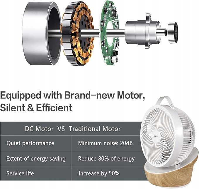 【Niskie zużycie energii i bardzo cichy】 Wyposażony w bezszczotkowy silnik prądu stałego, moc tego cichego wentylatora wynosi tylko 21 W, co pozwala zaoszczędzić 80% energii elektrycznej w porównaniu z wentylatorami silnika prądu przemiennego. Minimalny hałas to tylko 20 dB, bardzo cichy, idealny do sypialnia, salon i biuro. 1- 8 godzinny wyłącznik czasowy