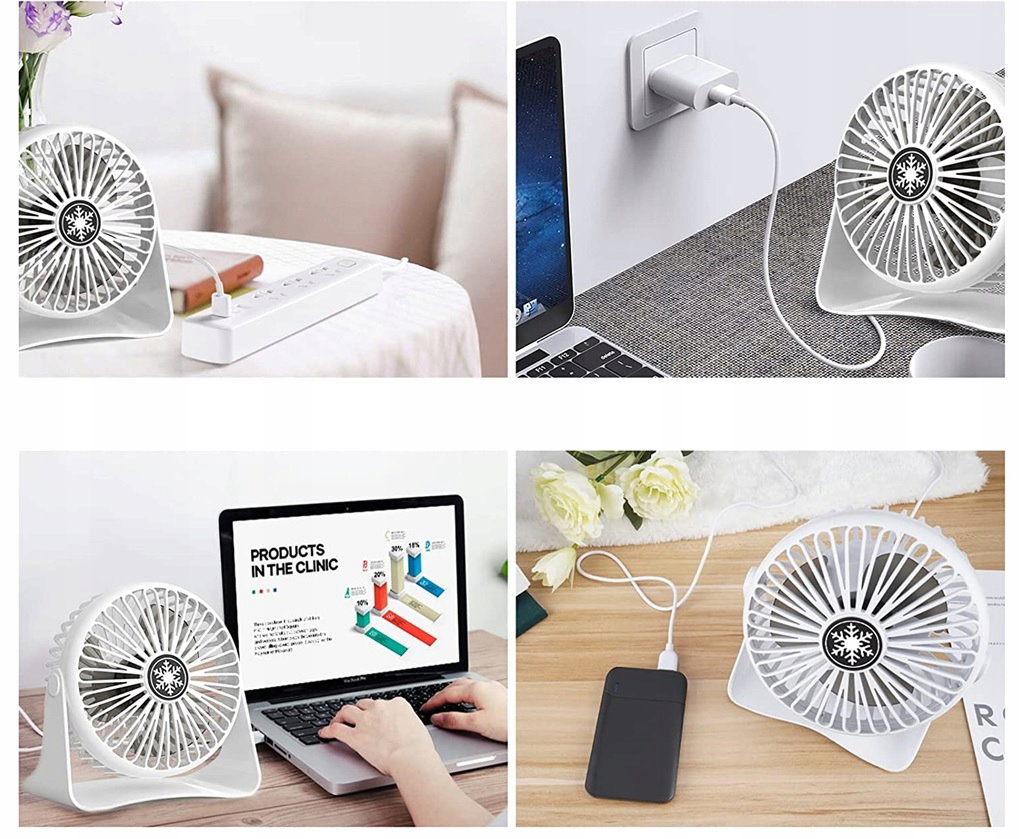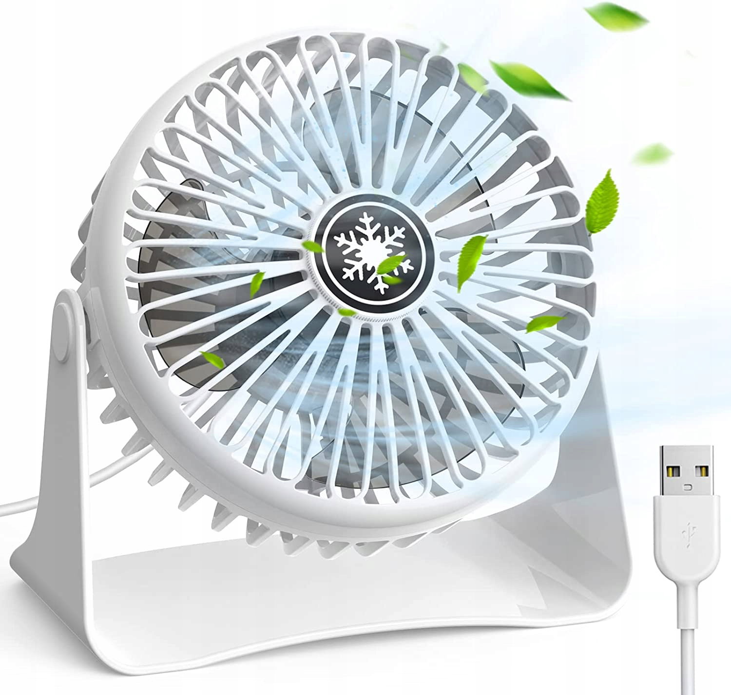Mały, ale potężny przenośny wentylator - Cichy wentylator biurkowy ma 3 regulowane prędkości (miękki wiatr / średni naturalny wiatr / silny wiatr), z łatwością spełnia różne wymagania. Obsługuje również obrót o 360 ° w górę i w dół, zapewniając dużą objętość powietrza 4,5 m/s, wystarczającą do szybkiego schłodzenia. Idealny do używania tego mini wentylatora USB w biurze, gabinecie, w czasie wolnym, podczas snu.