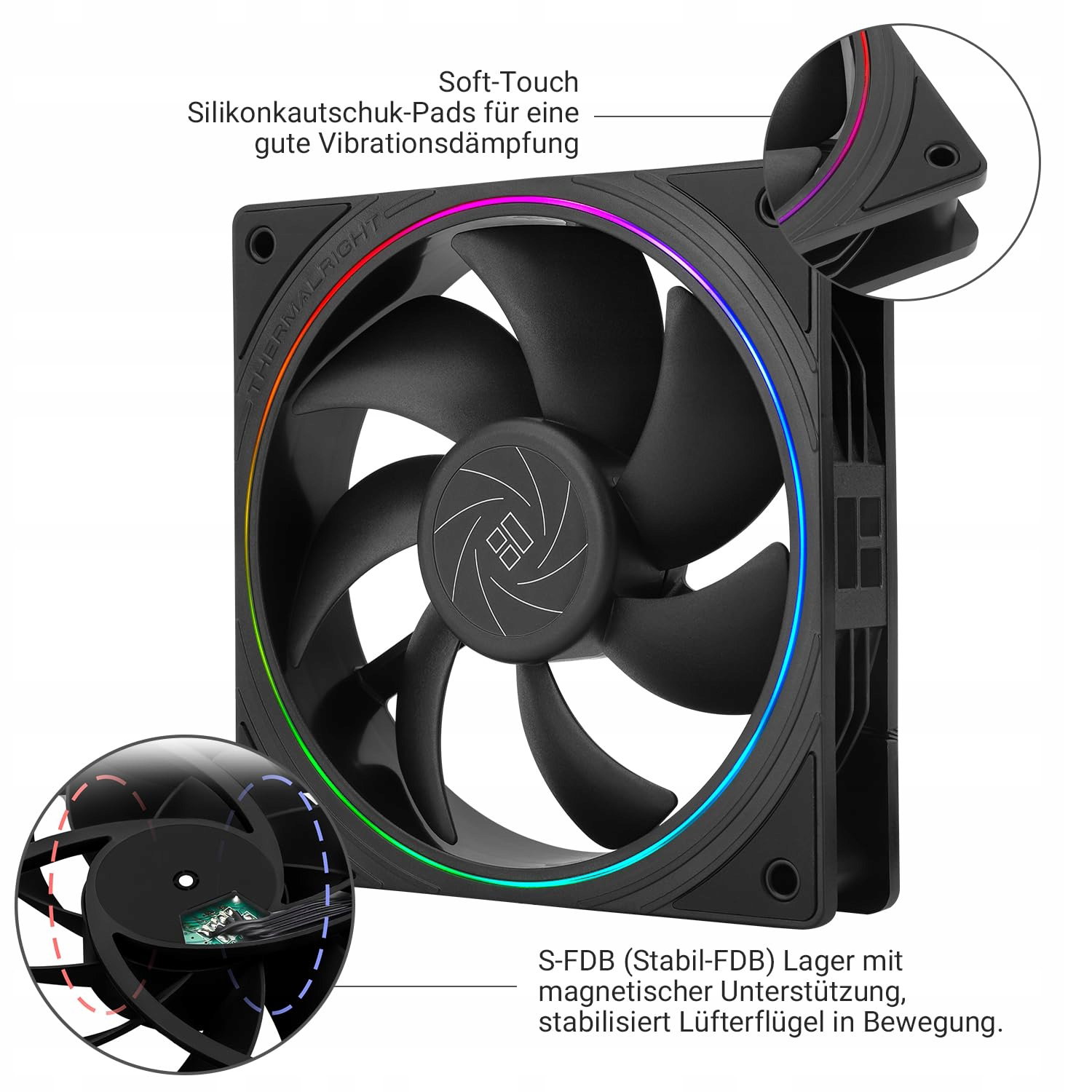 - Starannie zaprojektowane wysokiej jakości łożyska S-FDB rozwiązują problem łopatek wentylatora chłodzącego PC, które poruszają się w trybie podnoszenia, redukują hałas wentylatora do minimum, zapewniając maksymalną wydajność chłodzenia i wydłużając żywotność wentylatora komputera.