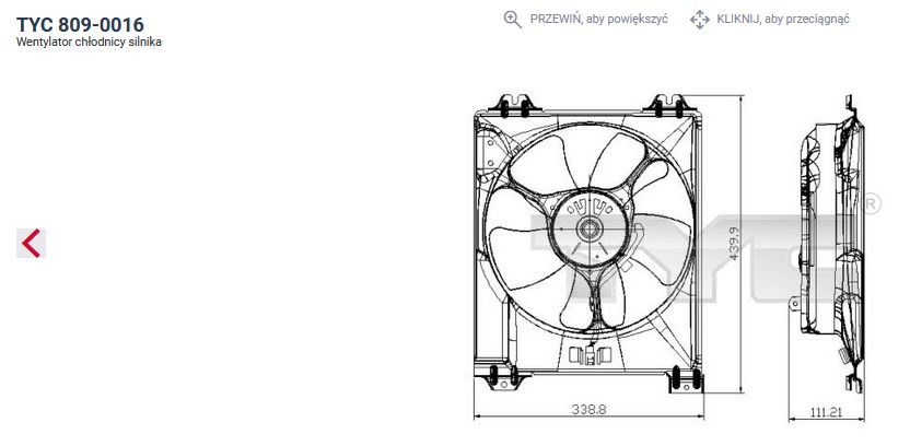 Wentylator z obudową TYC809-0016 1.9 D Multijet 4x4 SUZUKI SX4 FIAT SEDICI