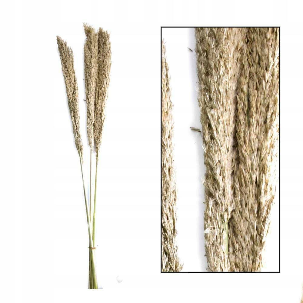 Trawy trzcinowe i pampasowe to jeden z najnowszych trendów wśród dekoracji wnętrzarskich. Trawy sprowadzane są z Holandii, gdzie są suszone w odpowiednich warunkach, aby cieszyć się nimi przez długie lata. Trawy są długowieczne. Będą dekorowały nasze wnętrza miesiącami bez obaw o utratę walorów estetycznych. Pasują do wnętrz w stylu boho, etno, ale wkomponują się także w bardziej eleganckie i minimalistyczne wnętrza. Suszona trawa to produkt naturalny w związku z tym gałązki mogą nieznacznie różnić się kształtem, kolorem, rozmiarem. W pęczku znajduje się 10 szt dzikiej trawy trzcinowej.