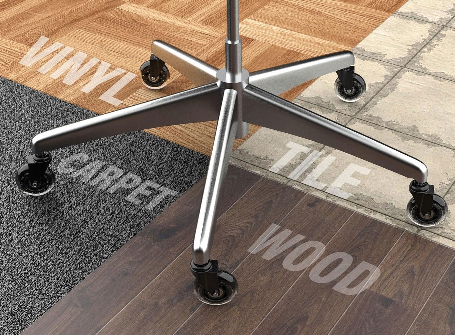- Przyjazne dla podłóg: Te kółka nie zarysują, nie zabrudzą ani nie uszkodzą Twojej podłogi. Ciesz się bezproblemowym i bezpiecznym ślizgiem po drewnianych, parkietowych, laminowanych, winylowych, kafelkowych i dywanowych podłogach przez cały dzień.