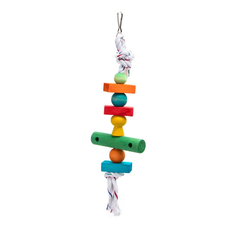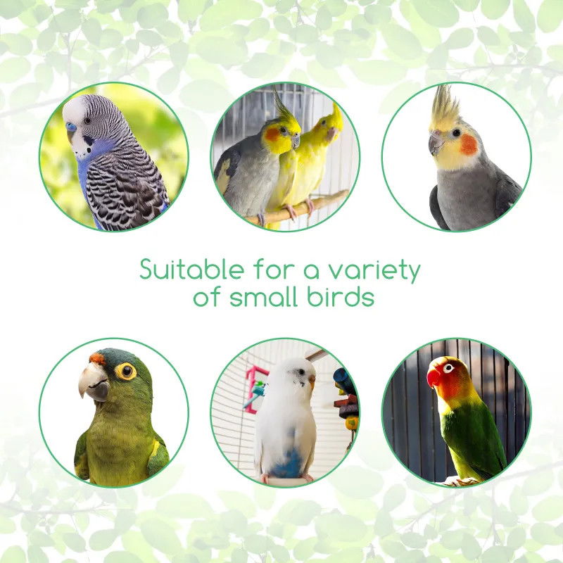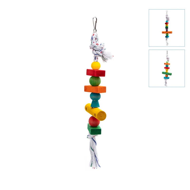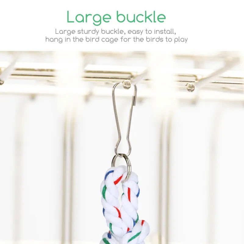 Trwała klamra ułatwiająca montaż i zawieszenie, kolorowa i ekologiczna lina bawełniana, estetyczna i trwała, dostępna w wielu kolorach. Wykonana z naturalnego drewna, malowana jadalną farbą, dostępna w różnych kształtach, jasne kolory przyciągają uwagę ptaków , nietoksyczny i nieszkodliwy, odporny na gryzienie, dostępny w wielu wersjach kolorystycznych.