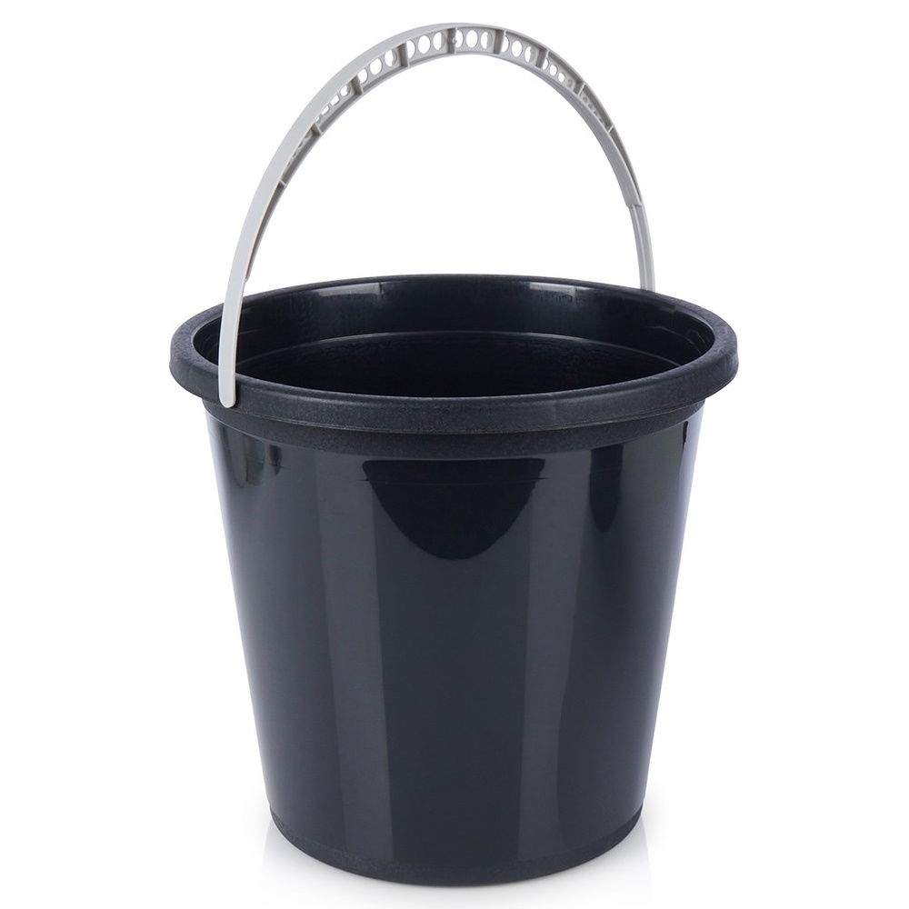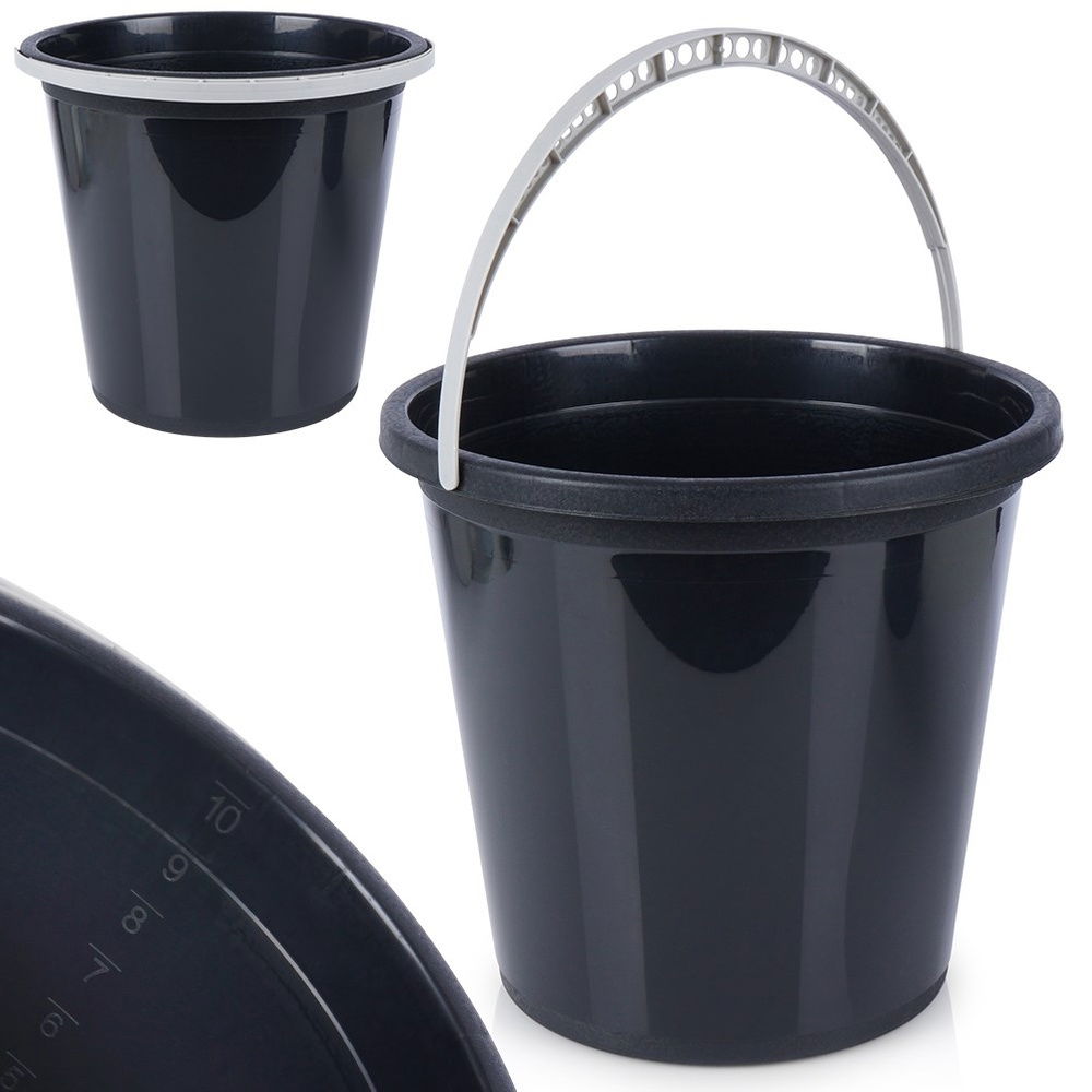WYTRZYMAŁE - Wykonane z najwyższej jakości tworzywa w kolorze czarnym, posiada uchwyt w kolorze jasnoszarym. Wiaderko jest wytrzymałe i lekkie. Tworzywo, którego użyto do produkcji wiadra jest w 90% pozyskane z recyklingu. Wiadro w 100% nadaje się do ponownego recyklingu.