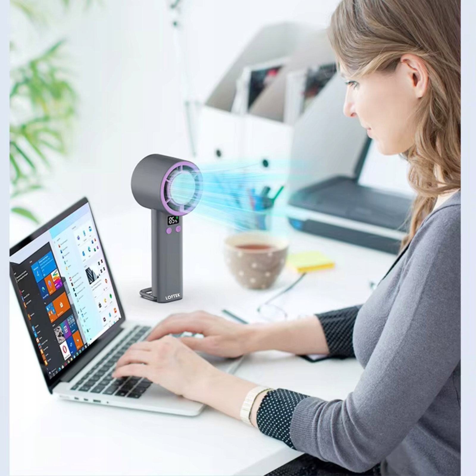 Możesz dopasować siłę nawiewu do swoich potrzeb - od lekkiej bryzy po mocne chłodzenie. Sterowanie jednym przyciskiem jest proste i wygodne.