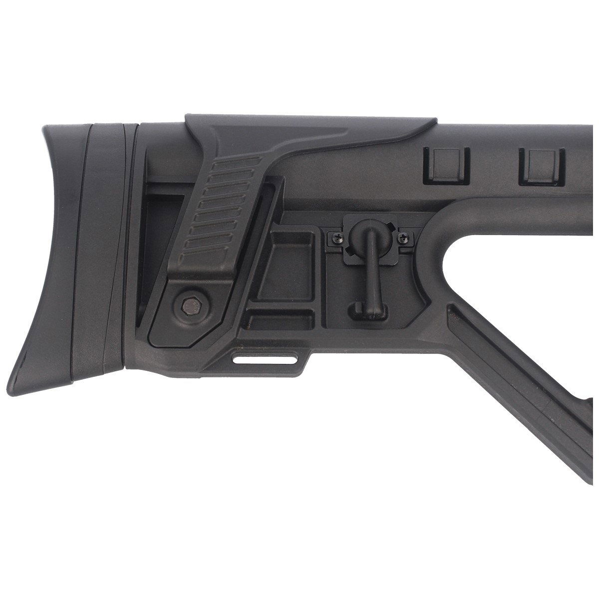 Osada - taktyczna z otworem na kciuk TH (Thumb Hole). Wstawki z miękkiej gumy na chwycie pistoletowym oraz ryflowana środkowa część łoża dla lepszej kontroli i wyczucia. Kolba przystosowana dla osób prawo i leworęcznych zakończona gumową stopką absorbuje energię odrzutu po oddanym strzale. Regulacja stopki w pionie (góra / dół) oraz na wysokość baki. Dzięki możliwości regulacji proces skonfigurowania wiatrówki zgodnie z własnymi preferencjami jak i stylem strzelania jest szybki i nieskomplikowany.