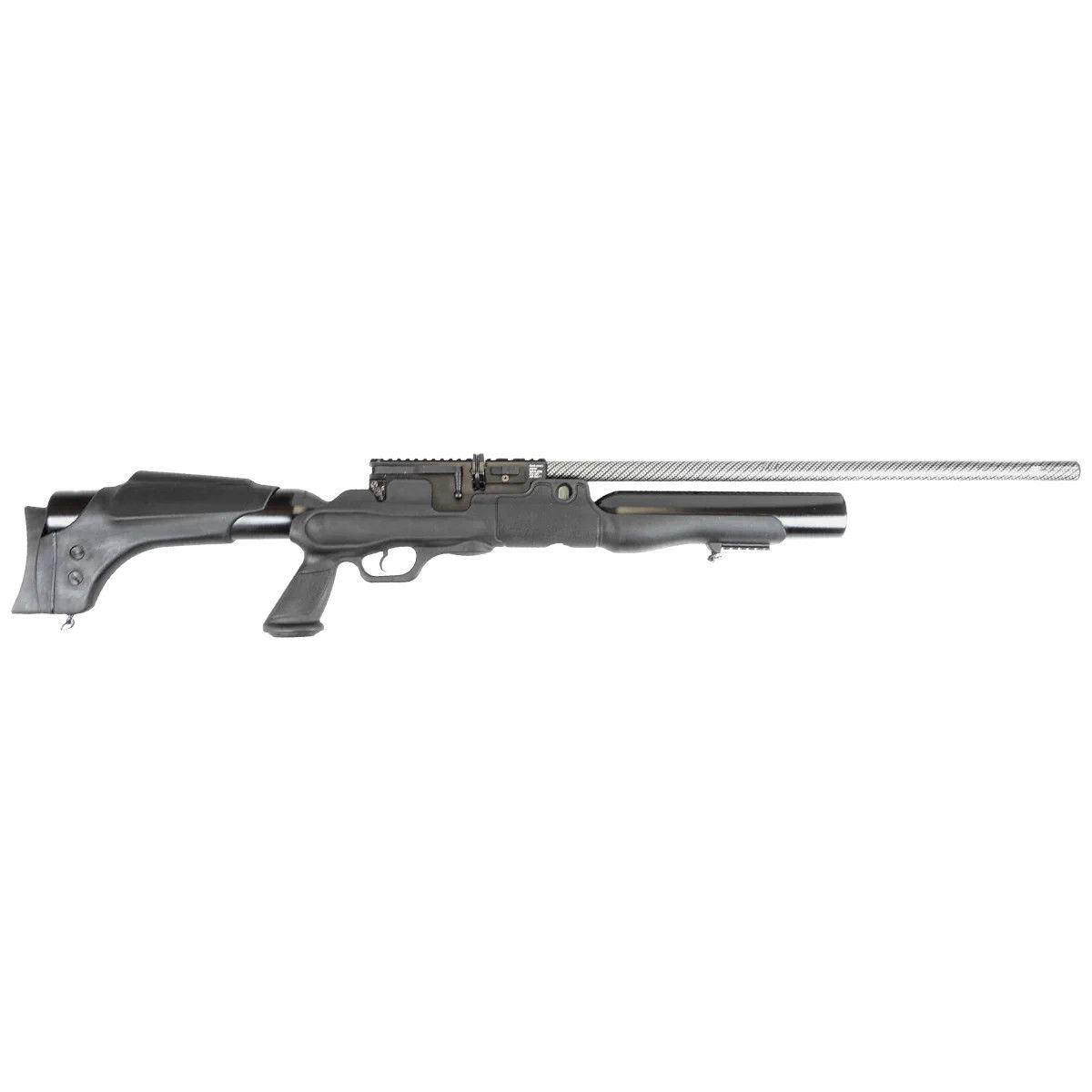 Lufa - precyzyjna gwintowana lufa o długości 23" (585 mm) w pełni pokryta metalową osłoną pokrytą powłoką Carbon. Zakończona integralnym tłumikiem Hatsan QE (QuietEnergy) redukującym o -50% odgłos wystrzału. Takie rozwiązanie pomaga zachować maksymalną energię wylotową śrucin, co może być utrudnione w wypadku opcjonalnego tłumika. Konstruktorzy firmy Hatsan zadbali o rozwiązanie tego problemu, a dodatkowo poprawiło się wyważenie wiatrówki. Zwężenie u wylotu lufy zwane czokiem poprawia skupienie. Jakość wykonania lufy jest jednym z najważniejszych elementów każdej broni / wiatrówki. Wpływa na celność karabinu, zwłaszcza podczas strzelania na dużych dystansach.