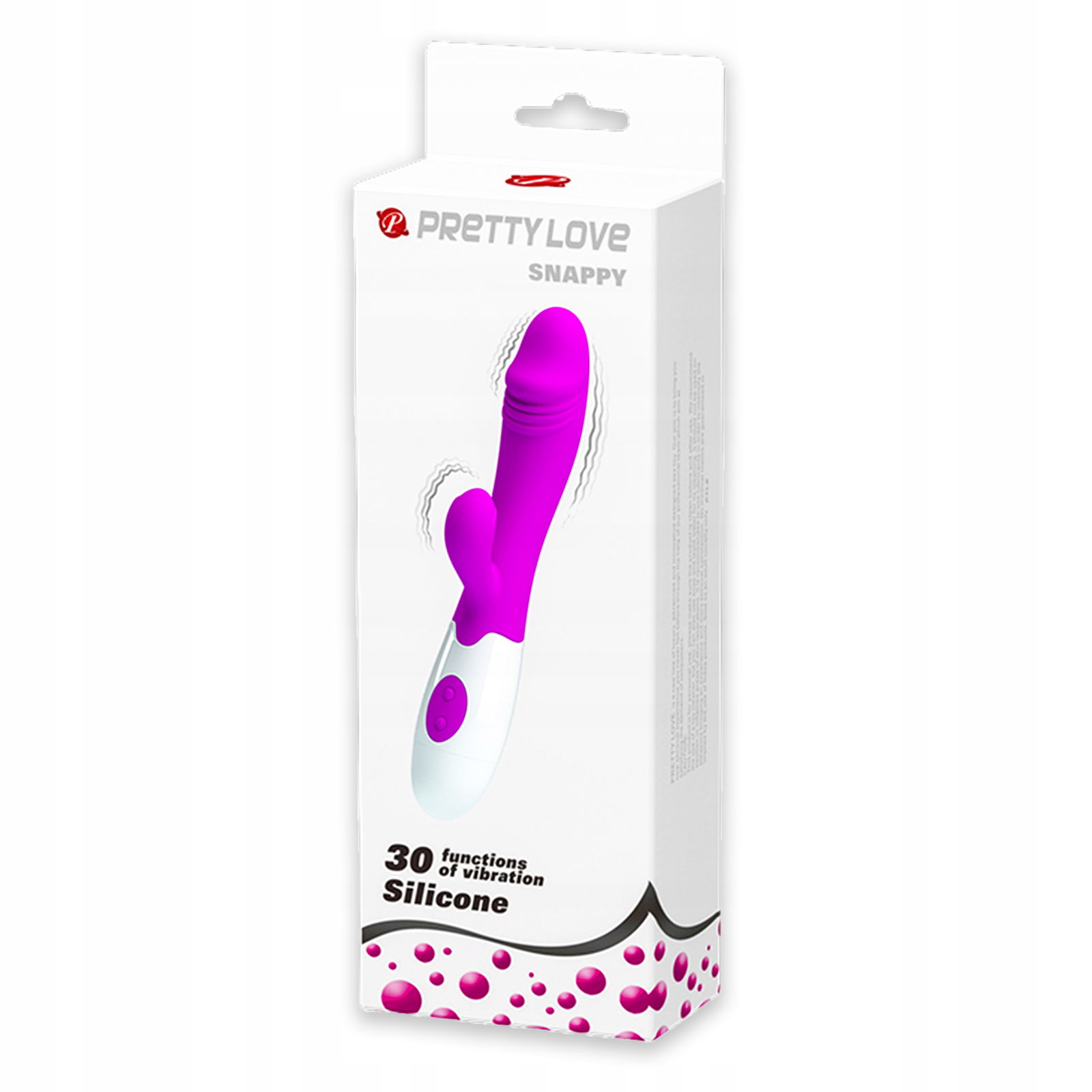 Pretty Love Snappy posiada unikalny kształt, którego główną zaletą jest masażer punktu G, znajdujący się na samym jego szczycie który wibrując dostarczają niezapomnianej przyjemności. Dodatkowo wibrator wyposażony jest w stymulator łechtaczki, który działając wspólnie z masażerem dostarcza maksymalną rozkosz i podwójny orgazm!