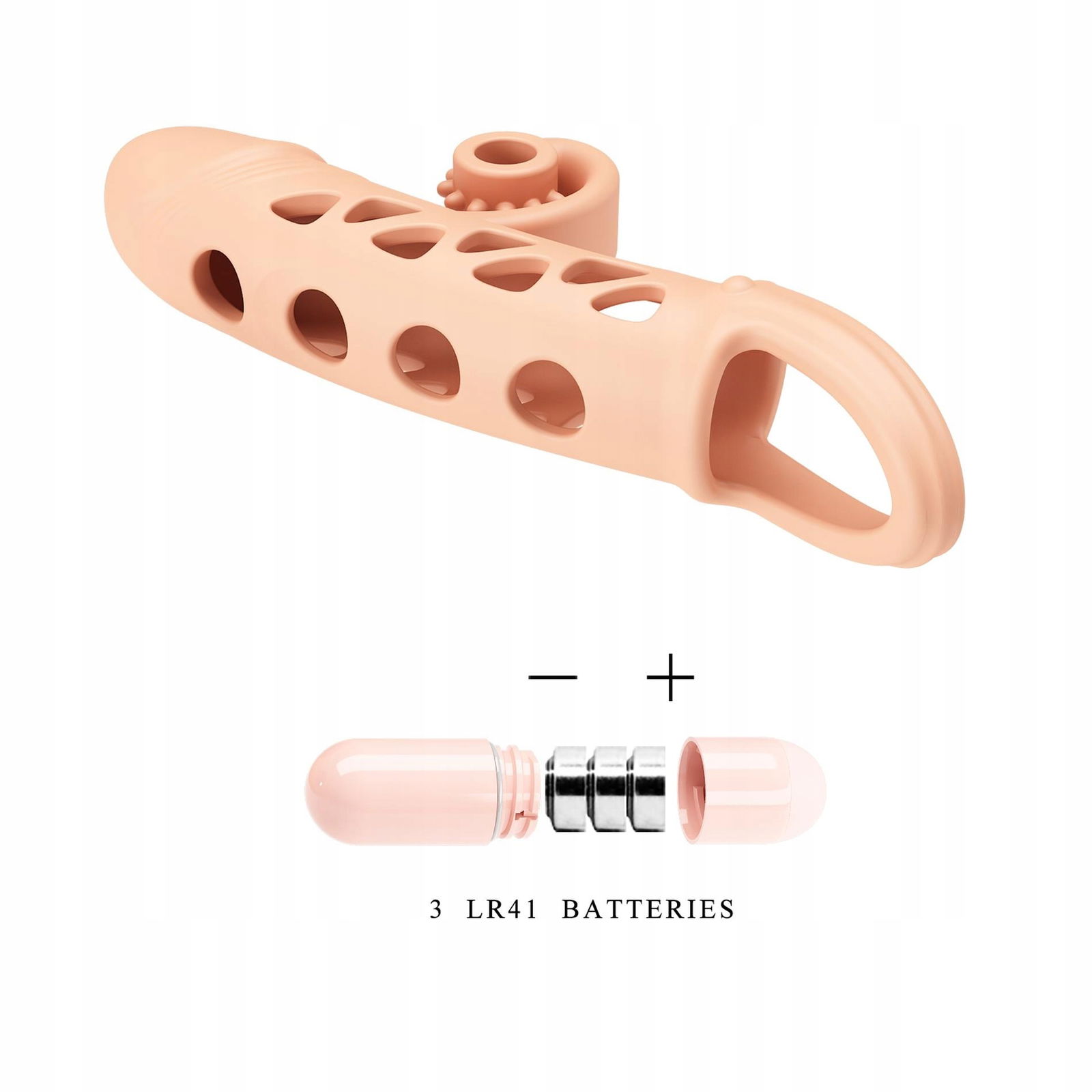 ROMANCE - Penis sleeve, TPE material,vibration, battery LR41*3, Flesh