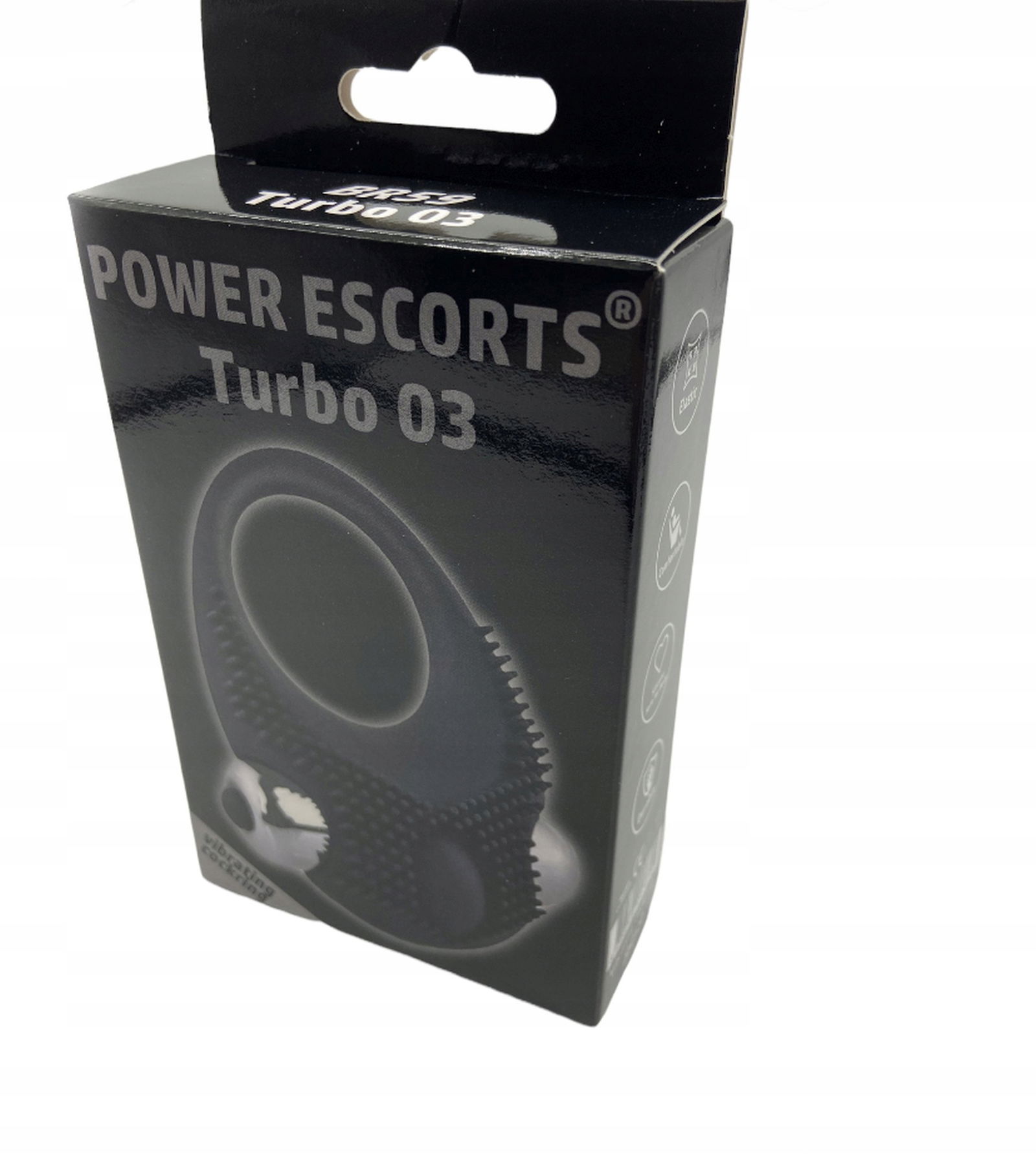 Power escorts prezentuje turbo 03 wibrujący cockring, o unikalnym wzornictwie i dobrym materiale silikonu, w modnym kolorze czarnym.- duży rozmiar silikonowego wibrującego cockringa-najnowszy model na rynku-w mocnym kolorowym pudełku z dobrym objaśnieniem
