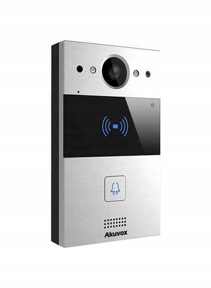 WIDEODOMOFON Akuvox R20A to kompaktowy, jednoczęściowy wideodomofon SIP o rozmiarach zbliżonych do iPhone’a XR, idealny do wąskich miejsc montażowych.