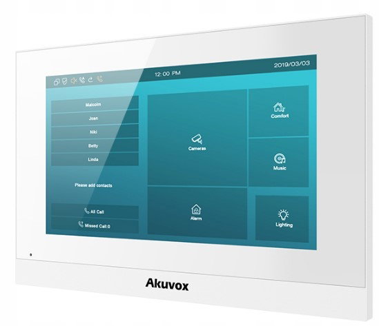 Wielofunkcyjny komunikator Akuvox C313N z systemem operacyjnym Linux umożliwia komunikację audio i wideo z wideodomofonami, wykorzystując protokół SIP 2.0. Wyposażony w 7-calowy, pojemnościowy ekran dotykowy o wysokiej rozdzielczości zapewniający intuicyjną nawigację i ostry obraz. Stylowy wygląd i smukła konstrukcja sprawiają, że monitor idealnie pasuje do każdego wnętrza. Wyposażony jest w głośnik 4 Ω/2 W, mikrofon, przekaźnik, port RS‑485, wejście dzwonka i port Ethernet.