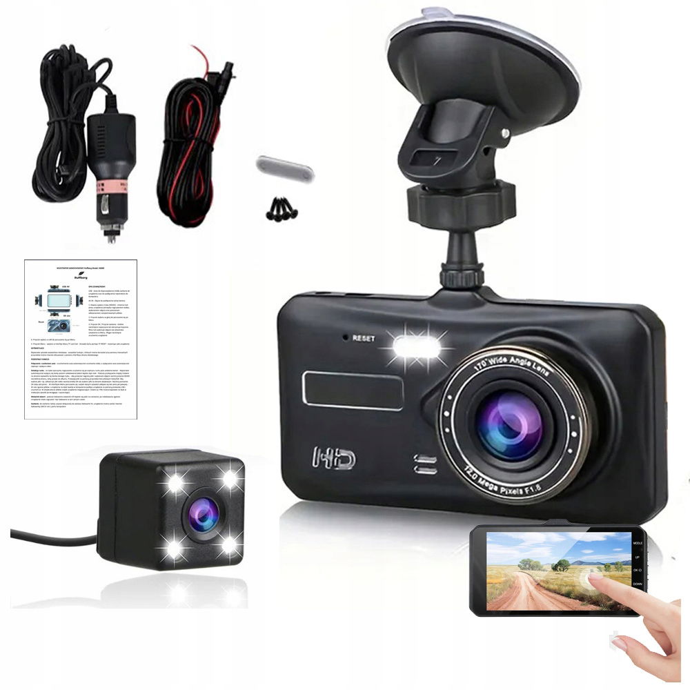 WIDEOREJESTRATOR JAZDY SAMOCHODOWY DOTYKOWY PRZÓD TYŁ KAMERA COFANIA MENUPL
