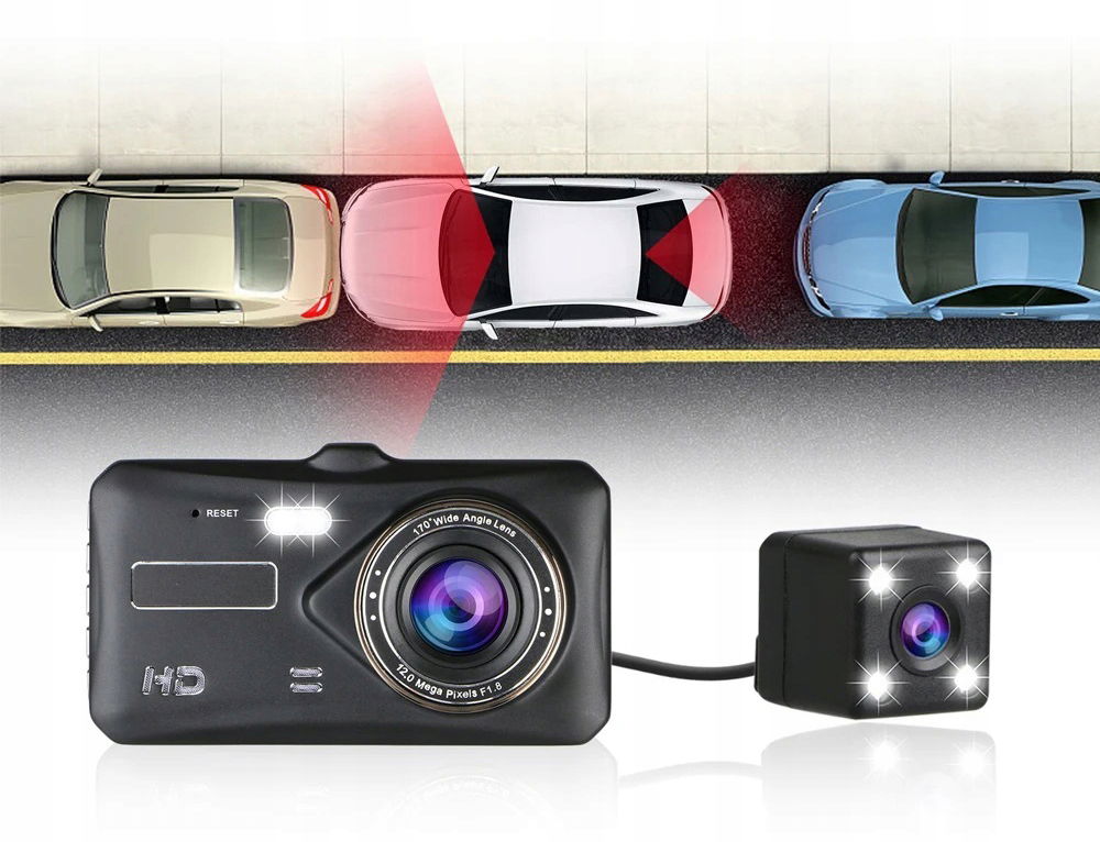 WIDEOREJESTRATOR JAZDY SAMOCHODOWY DOTYKOWY PRZÓD TYŁ KAMERA COFANIA 128GB