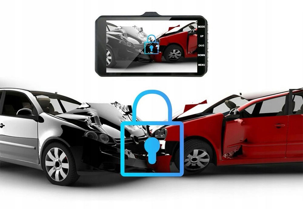 Najważniejszą cechą tego rejestratora jest możliwość jednoczesnego nagrywania obrazu z przodu i z tyłu pojazdu.
