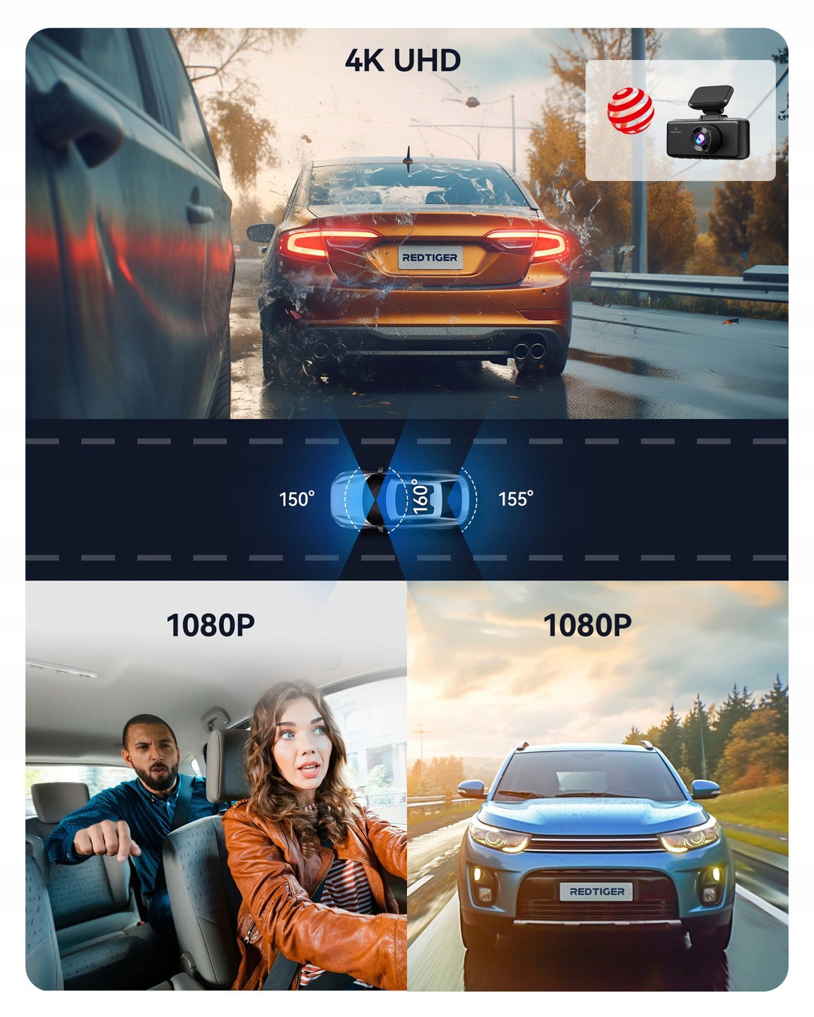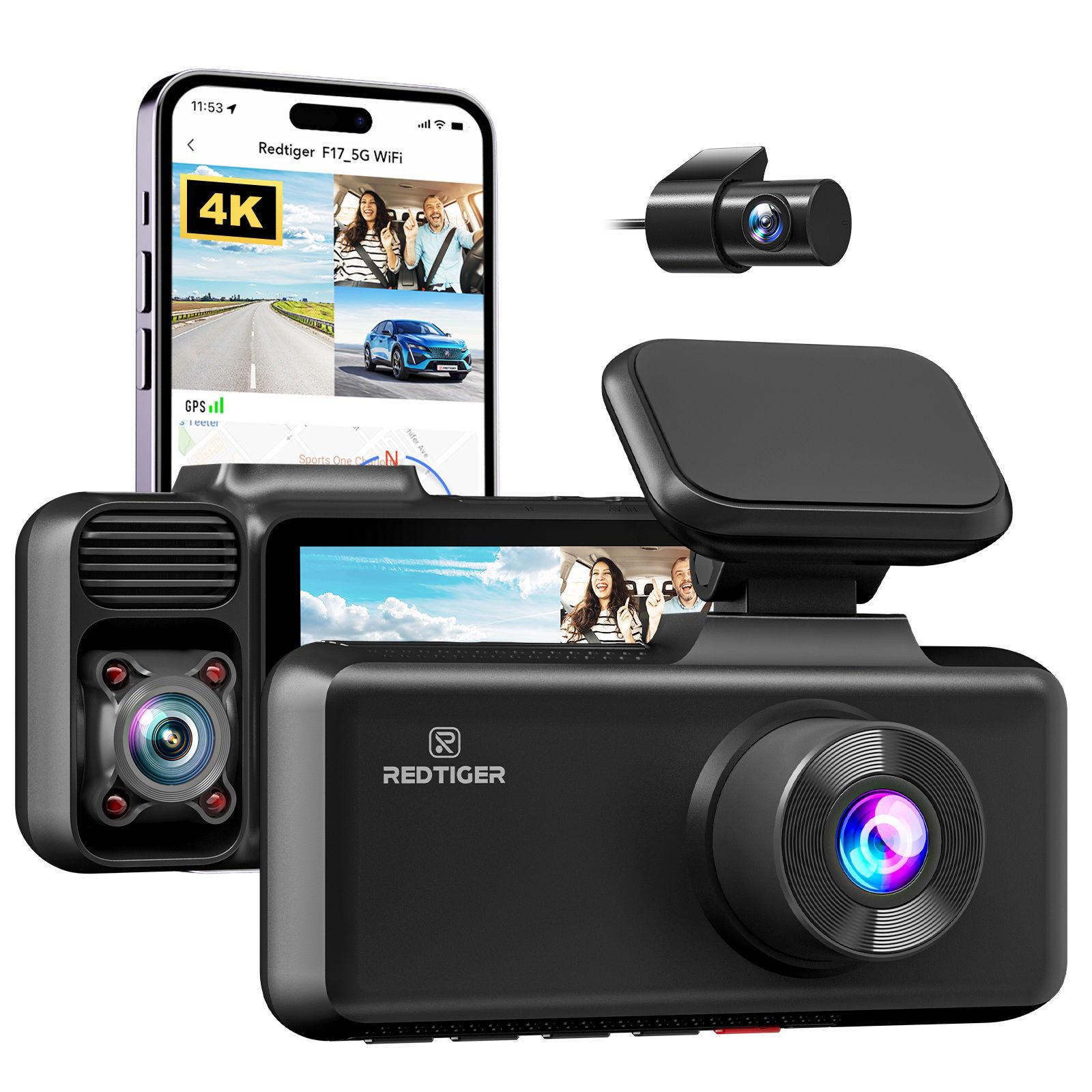 ⭐ REDTIGER F17 4K+1080P+1080P 3-kanałowa kamera Dash Cam — pełne pokrycie dla Road & Cabin