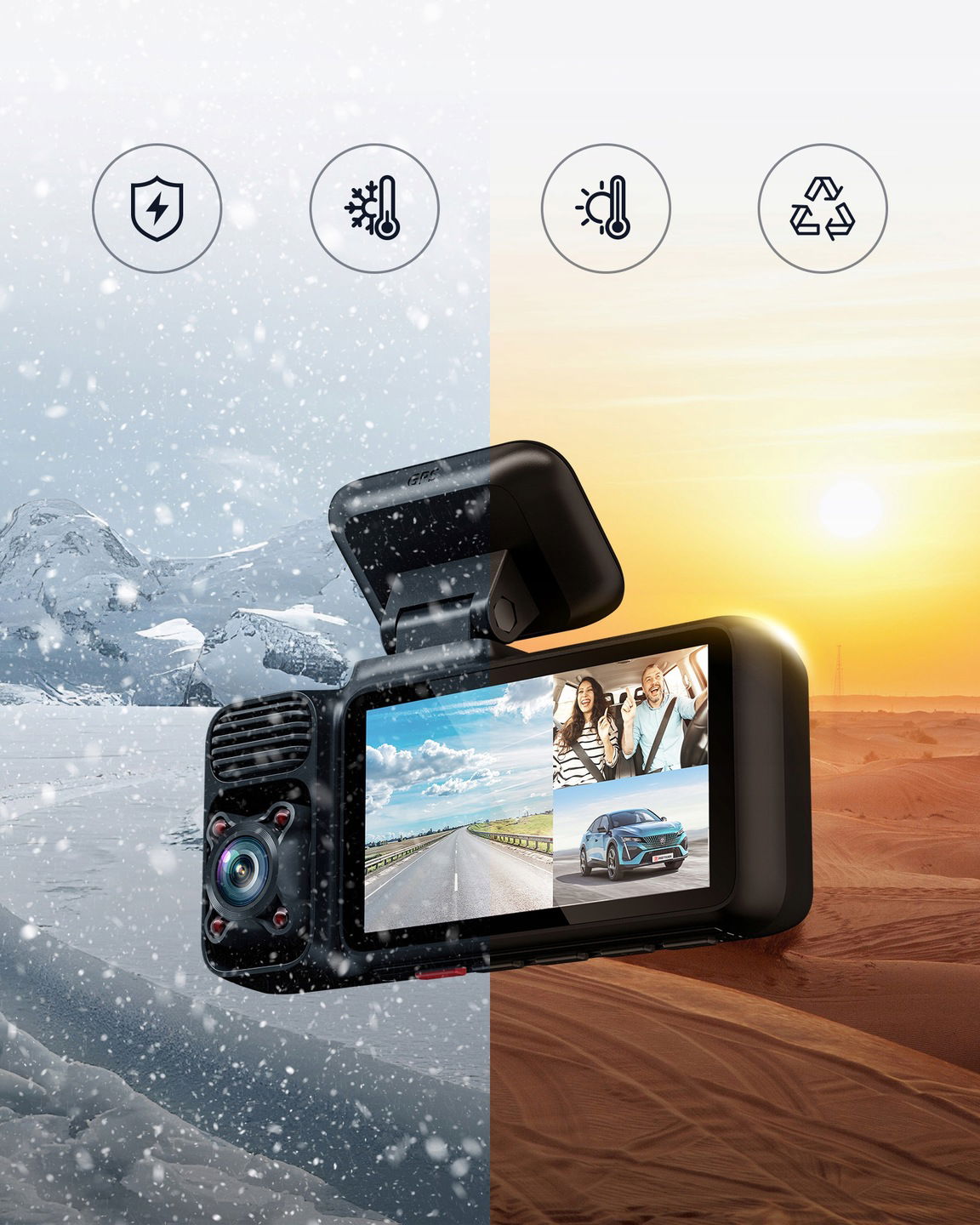 ☑ Front & Cabin Dual Recording – Nagrywaj drogę w oszałamiającym 4K @30FPS, a wnętrze w 2.5K @30FPS. Zapewnij szczegółowy, wysokiej jakości materiał filmowy dla maksymalnego bezpieczeństwa.