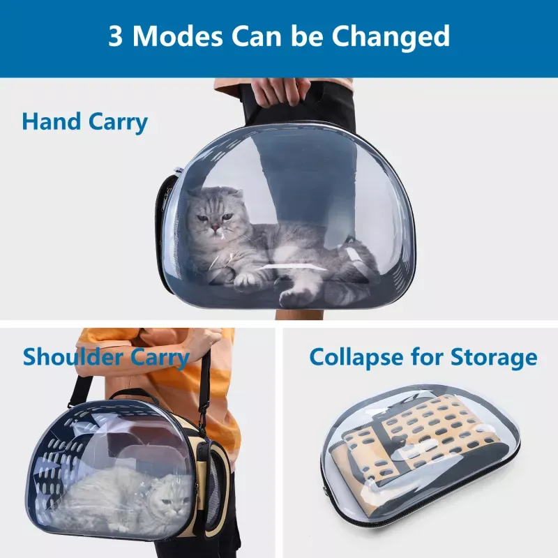 Przezroczysta konstrukcja pozwala kotom pożegnać się z klaustrofobią. Trójstronna wentylacja i porowata konstrukcja eliminują duszność. Przestronna przestrzeń pozwala zwierzętom swobodnie poruszać się wewnątrz torby.