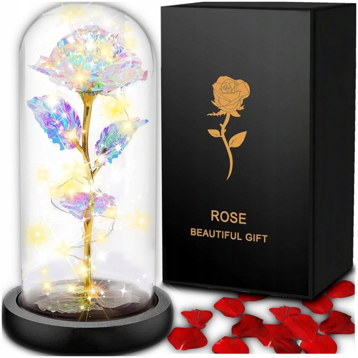 ⭐⭐WIECZNA RÓŻA W SZKLE LED ŚWIECĄCA PREZENT W CZARNYM PUDEŁKU NA WALENTYNKI⭐⭐