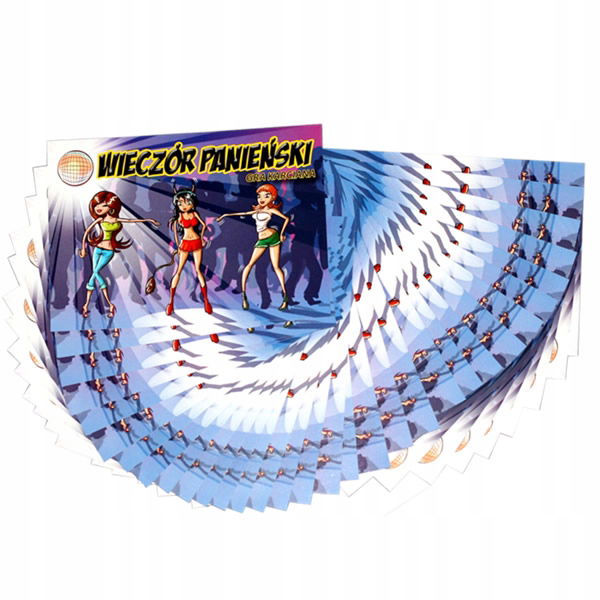 Za naprawdę niewielkie pieniądze otrzymujecie grę, która niemal rozwiąże Wasze problemy związane z organizacją Wieczoru Panieńskiego! Idealne na KAŻDY Wieczór Panieński. Designe oraz duży format sprawiają, że karty są ładne, czytelne i praktyczne. Format pojedynczej karty: A6 (105×148 mm). Zestaw zawiera 32 karty (31 poleceń +instrukcja)