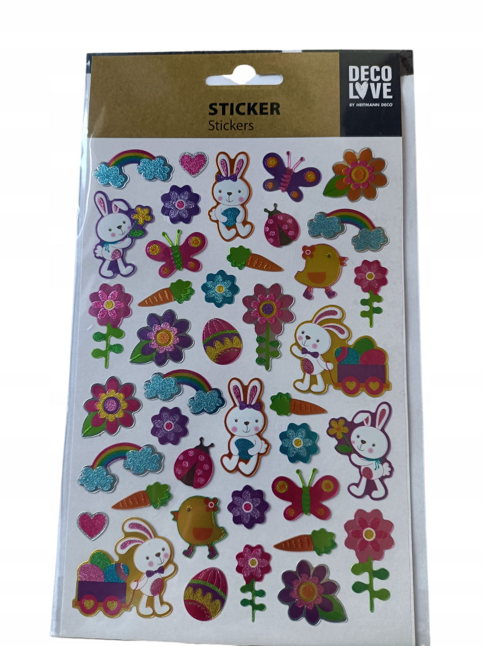 Wielkanocna naklejka na okno zajączek pisanki brokat