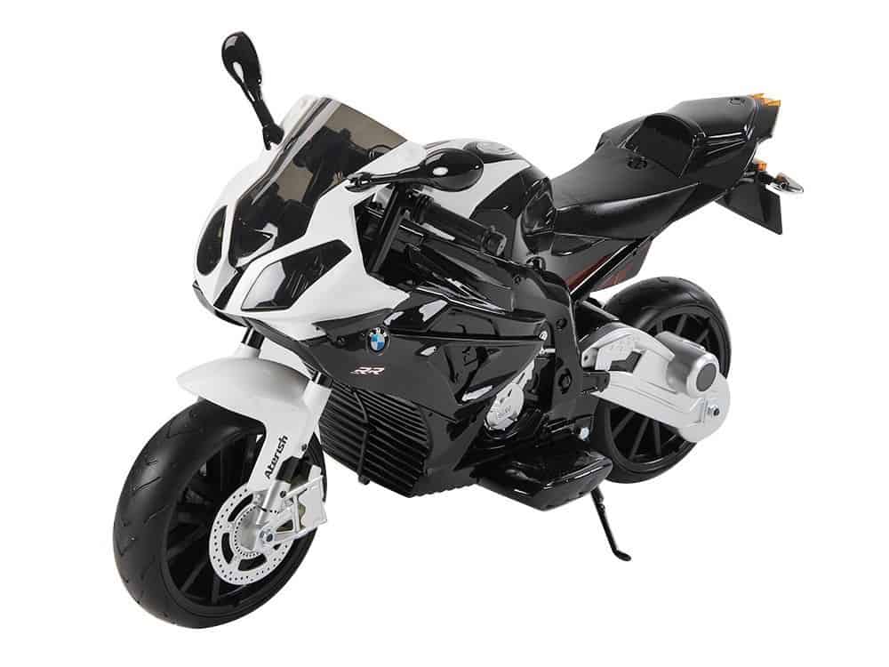 Licencjonowany motor ścigacz BMW S1000RR z dwoma prędkościami do 6 km/h. Odpalany za pomocą kluczyka ( jak prawdziwy z logiem BMW. Koła wykonane z EVA - miękkie i ciche. Dodatkowym atutem tego pojazdu są boczne kółka, które dla uczących się jeździć są dużym ułatwieniem w prowadzeniu pojazdu. Kółka można w łatwy sposób odkręcić tak aby doświadczony fan 2 kółek jeździł motorem jak dorosły motocyklista. Po zdjęciu kółek motor posiada wygodną stópkę dzięki której motor można postawić. Motor napędzany jest dwoma silnikami 12 V, dzięki czemu może poruszać się zarówno po nawierzchni utwardzonej jak i trawie czy pagórkach. Podczas jazdy motor świeci przednimi światłami, posiada dźwięk klaksonu oraz dźwięki jazdy motorem wyścigowym - bardzo realistyczne. Pojazd przeznaczony jest dla dzieci od 3 lat.