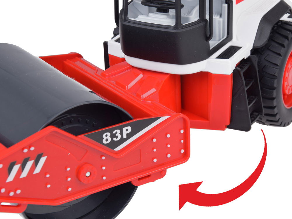Ta miniaturka walcu drogowego to marzenie każdego małego konstruktora! Wykonana z wysokiej jakości tworzywa sztucznego w charakterystycznej biało-czerwonej kolorystyce, ta zabawka budowlana zachwyca dopracowanymi detalami, takimi jak kabina kierowcy czy schodki prowadzące do niej. Dzięki możliwości skrętu ramienia o kilkanaście stopni, walec zapewnia realistyczne doznania podczas zabawy. Atrakcyjne efekty dźwiękowe i świetlne, aktywowane za pomocą żółtego przycisku na dachu, dodają dodatkowej frajdy. Gotowi na fantastyczną zabawę? Wymiary walca to około 16 cm wysokości, 13 cm szerokości i 30 cm długości. Zasilany 3 bateriami AG13 (w zestawie), ten walec zapakowany jest w estetyczne pudełko, idealne na prezent. Odkryj także inne pojazdy dostępne w sklepie Jokomisiada i rozbuduj swoją kolekcję!