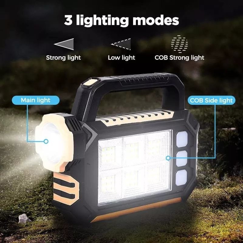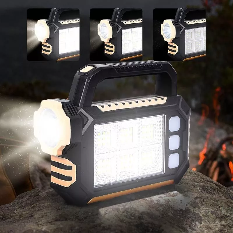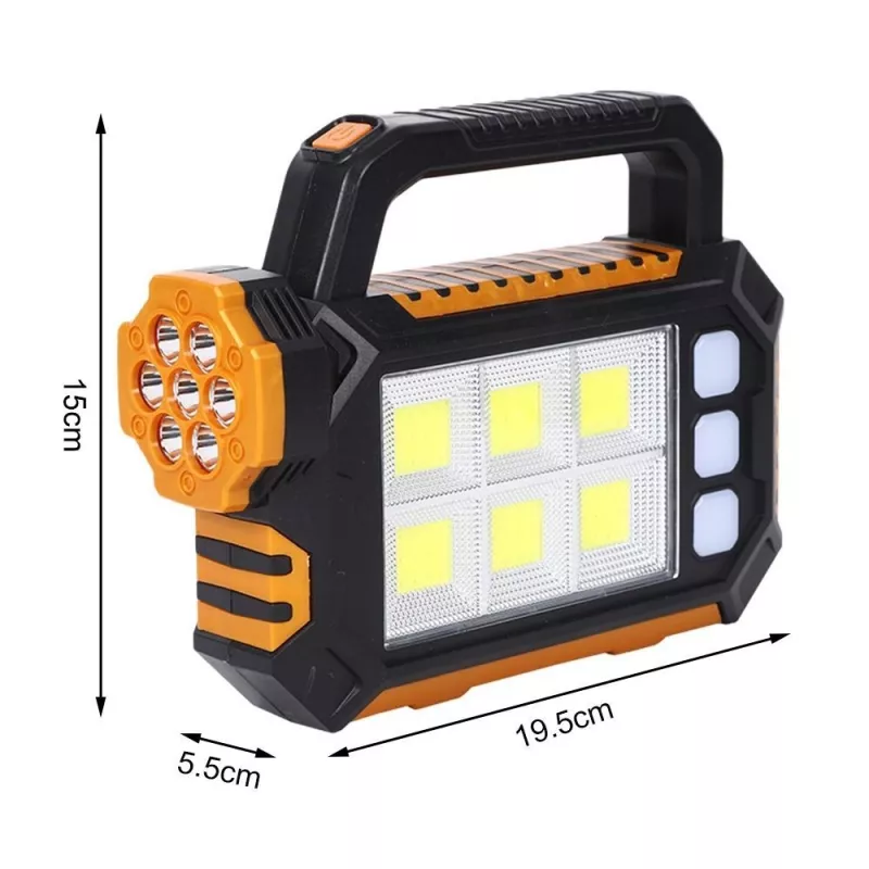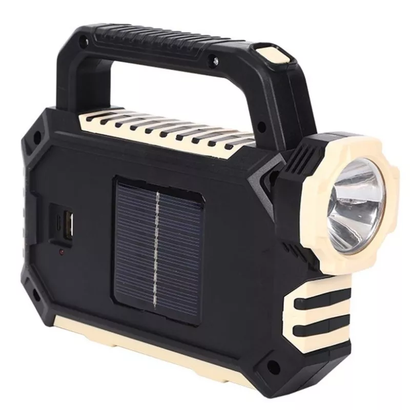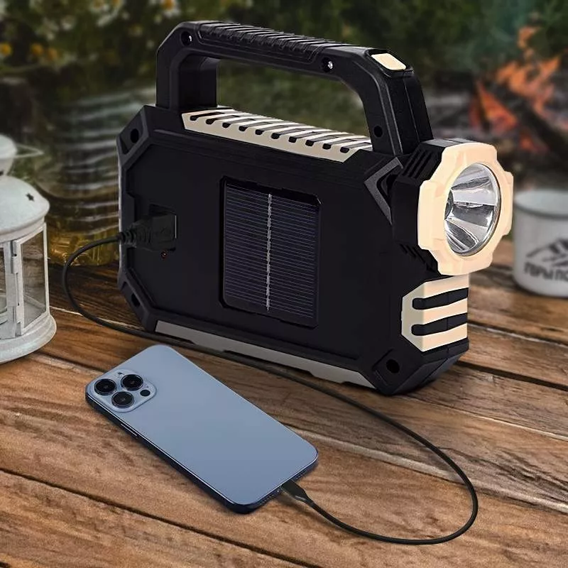 Wielofunkcyjna przenośna lampa latarka, ładowana słonecznie lub z ładowarki USB. Można ją wykorzystać jako ładowarkę do telefonu lub innego urządzenia. Jest idealna do biwakowania, wędkowania, odkrywania, konserwacji samochodu lub wykorzystana jako światło awaryjne. Lampka jest lekka a jej wymiary to tylko 15*19*5,5 cm.