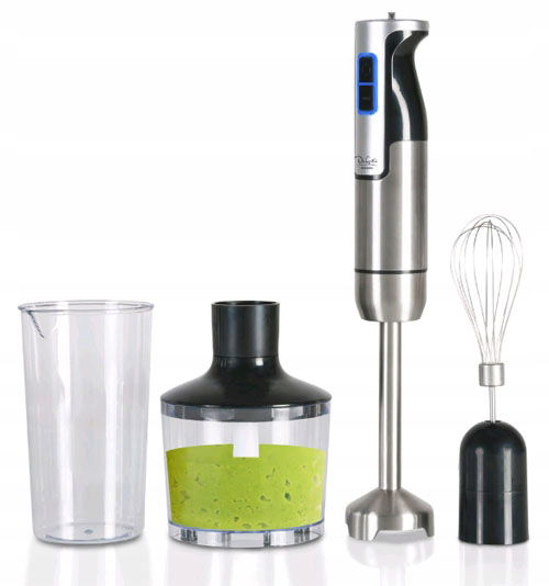- Załączone wyposażenie: końcówka blendująca, końcówka do ubijania, malakser, pojemnik, rozdrabniacz