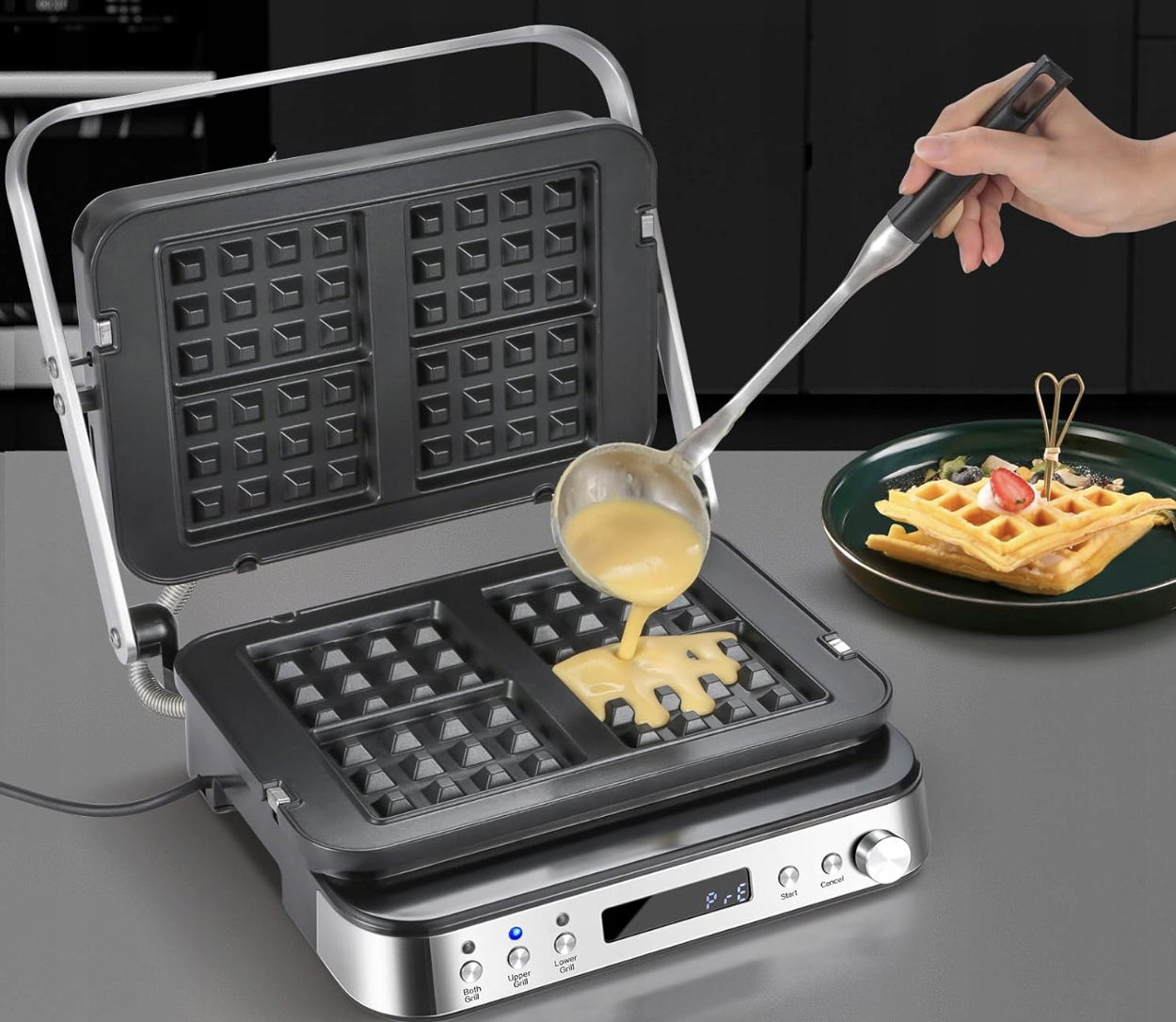 Przygotuj swoje ulubione potrawy w domu z wielofunkcyjnym grillem AMZCHEF 4 w 1. Urządzenie działa jako grill kontaktowy, grill stołowy, gofrownica i opiekacz do kanapek.