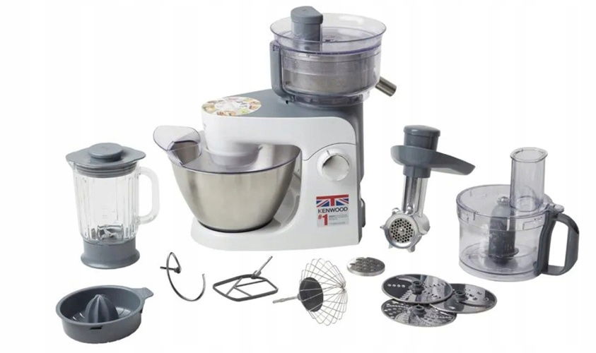 - W zestawie z Maszynką do mielenia, Malakserem, Sokowirówka, Blenderem, wyciskarką do cytrusów i trzema mieszadłami.