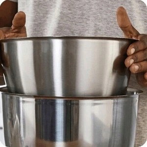 - Dwie misy z wysokiej jakości stali nierdzewnej o pojemności 5L i 7L zwiększają komfort pieczenia i gotowania.