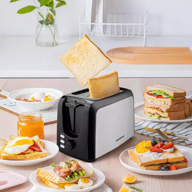 Wygodny toster opiekacz do pieczywa - wystarczy, że wciśniesz przycisk, poczekasz chwilę i będziesz mógł cieszyć się pięknym zapachem chleba, mając energię na cały dzień.