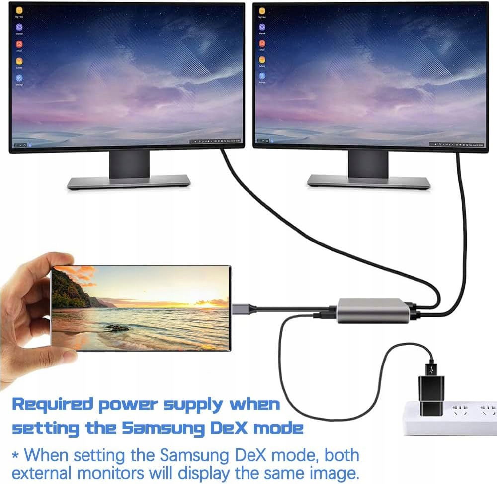 【Szeroka kompatybilność]】 - Adapter USB C na podwójne HDMI Kompatybilny z urządzeniami USB C z systemami MAC OS, Windows, Android i Linux. Wsparcie 2015-2019 MacBook / MacBook Pro, iPad Pro 2018, Macbook air 2018, Surface Book, Google Chromebook Pixel, Dell XPS 12/13/15, HP Spectre X2 / X360, Acer Spin7, Samsung S8 / S9 i wiele innych USB C urządzenia.