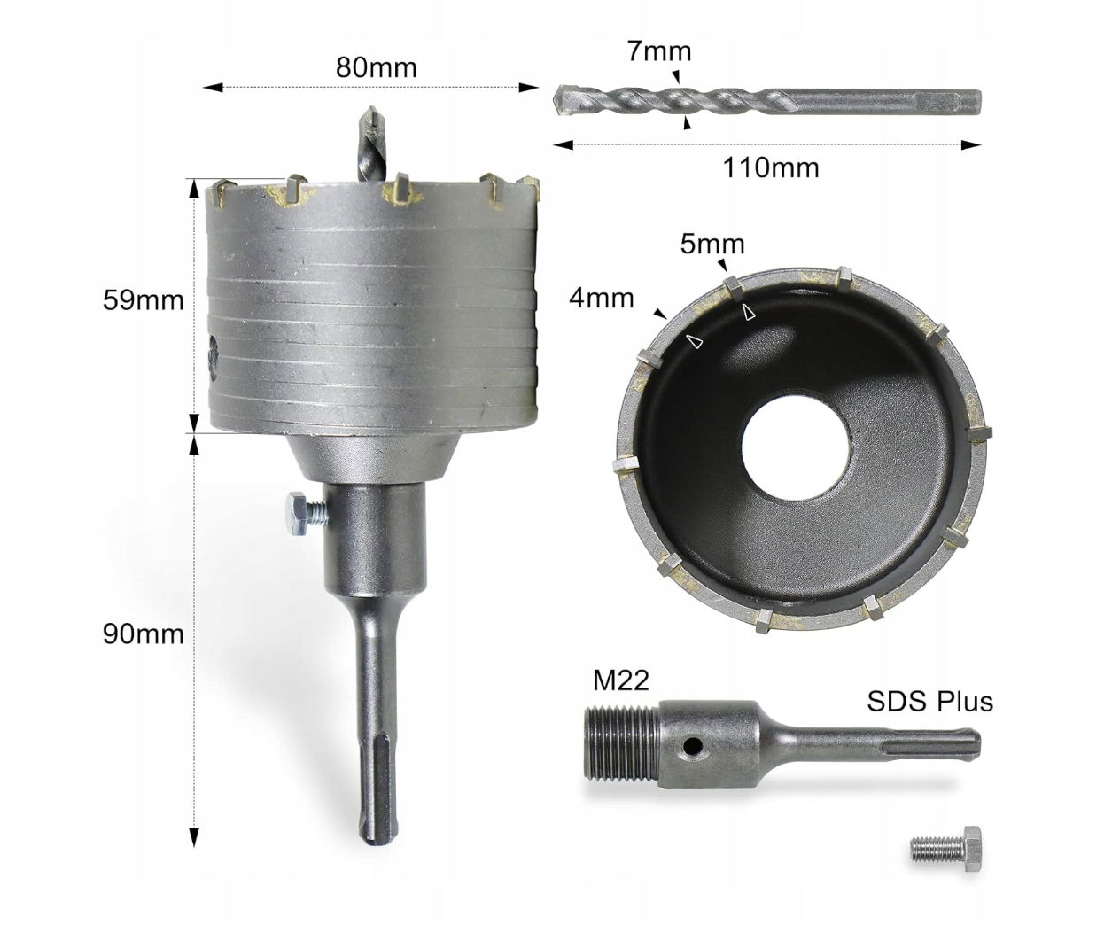 Wiertło CCLIFE 80mm Wiertło nasadowe do betonu z adapterem SDS Plus