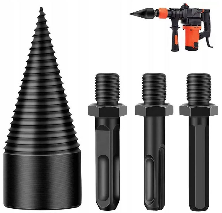 WIERTŁO –ŚWIDER DO ŁUPANIA DREWNA 45MM + ZESTAW ADAPTERÓW