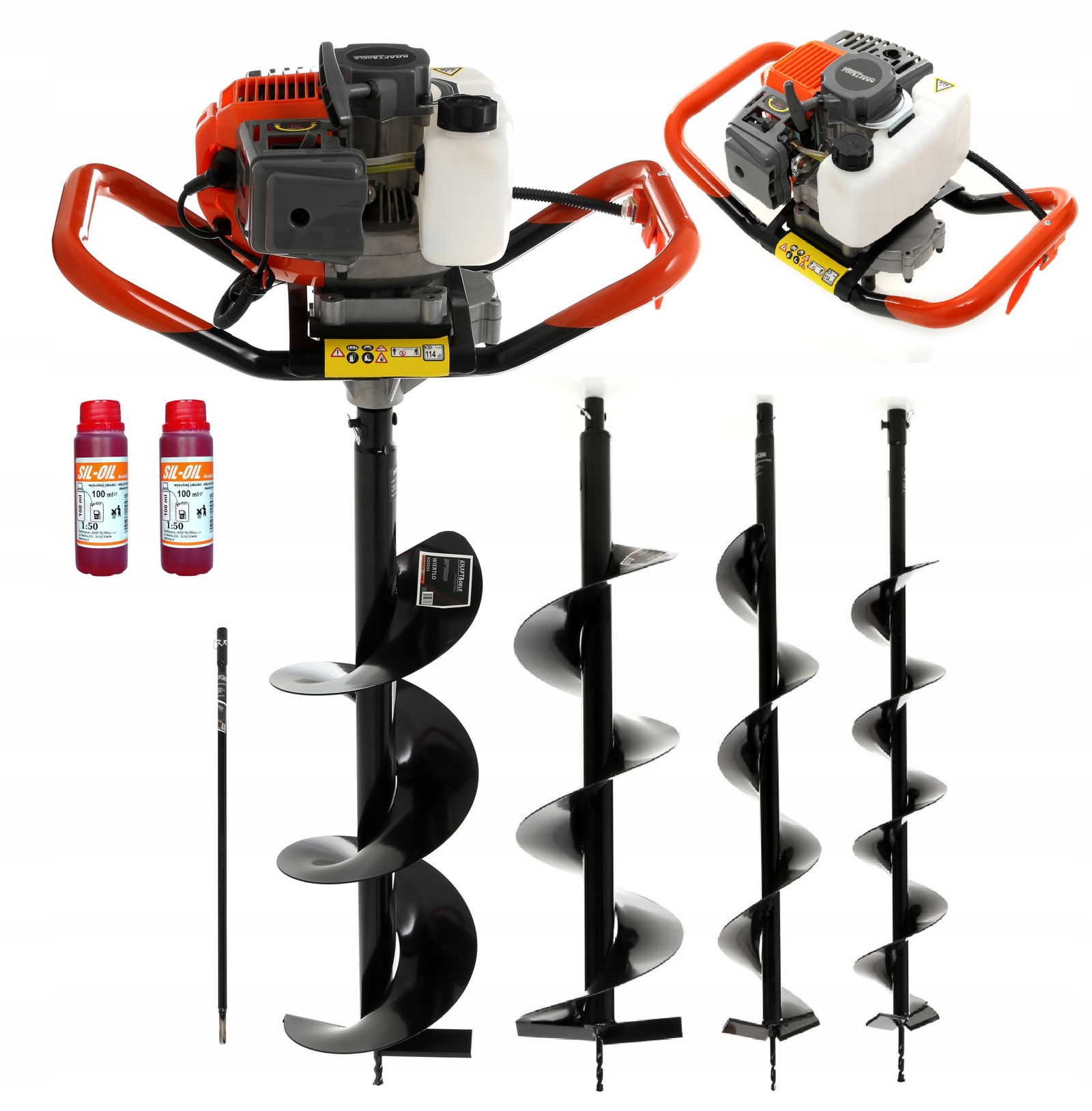 W zestawie profesjonalne wiertła o długości 80cm i szerokości 10, 15 i 20cm. Część robocza wiertła wykonana ze stali najlepszej jakości, co gwarantuje optymalne parametry pracy i wysoką wytrzymałość na zużycie. Stabilna, masywna konstrukcja stalowa.
