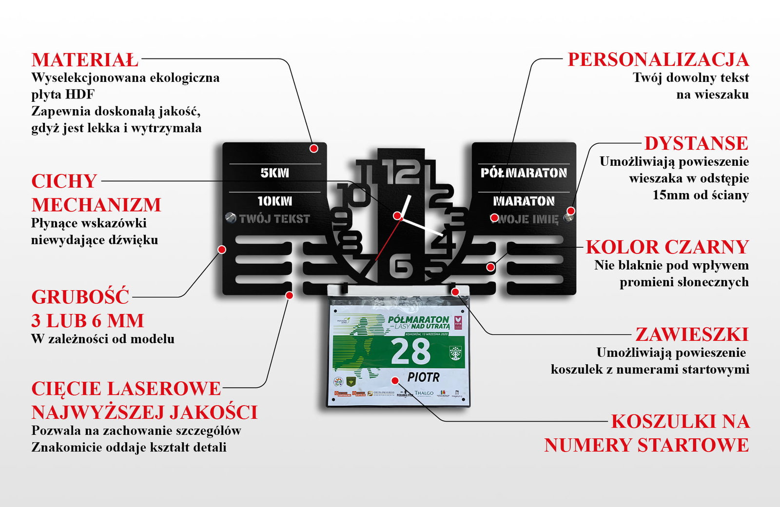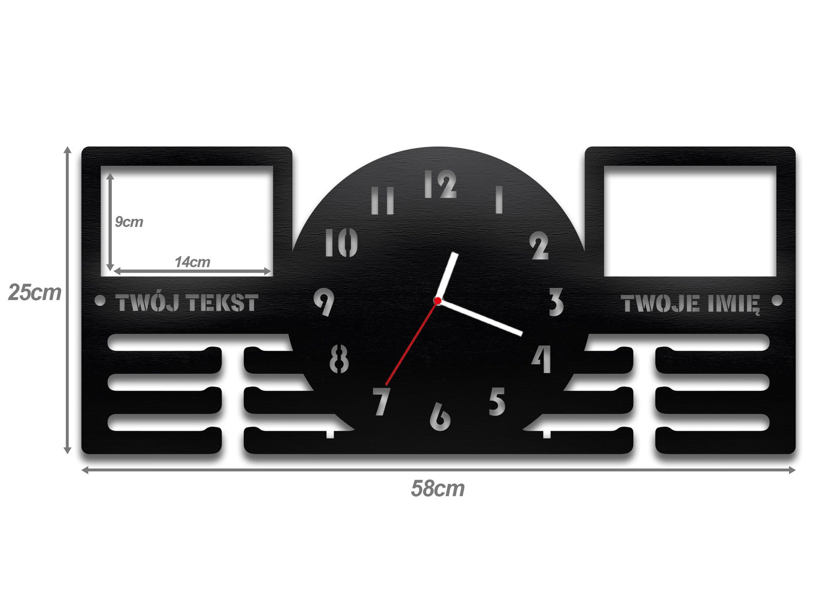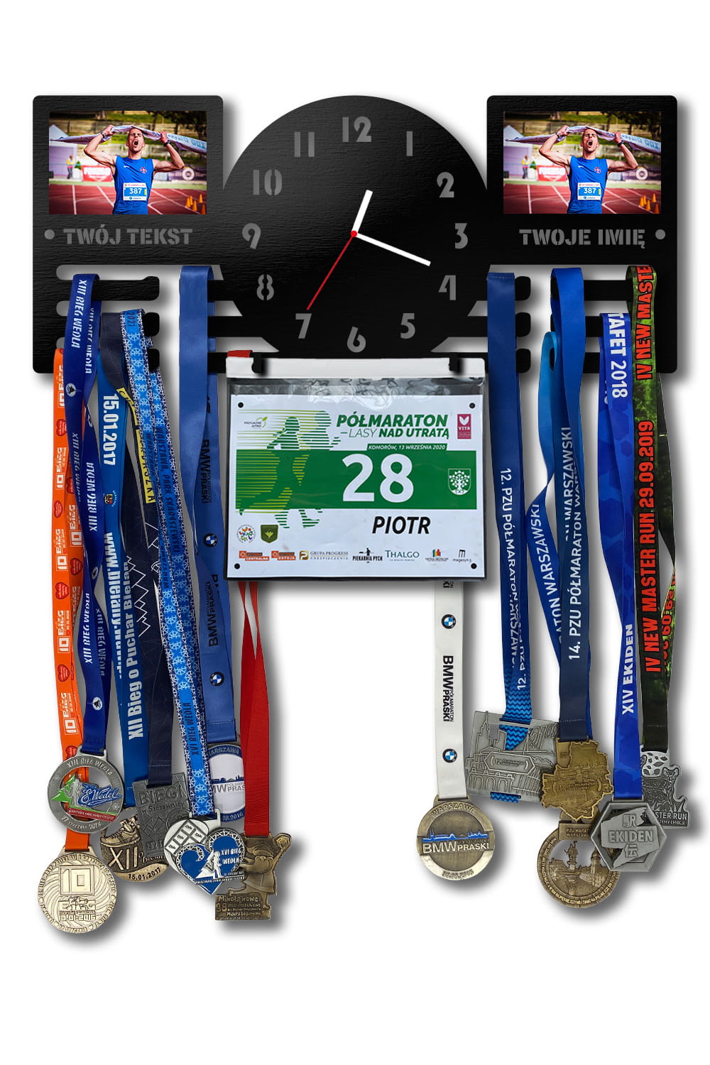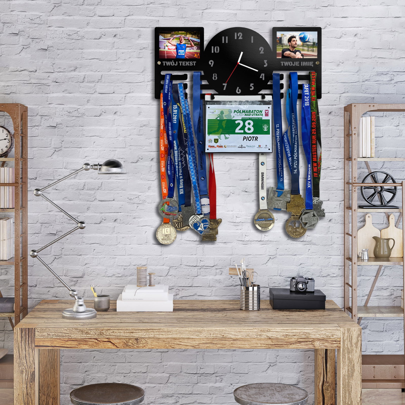 Wieszak na medale i numery startowe z zegarem ramka na zdjęcie twoje imię dowolny tekst 365.1